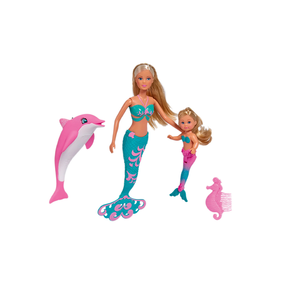 حورية بحر – ستيفي وشقيقتها إيفي، كحوريتين فريدتين، تستكشفان العالم تحت الماء. كلتا الدميتين لهما شعر أشقر طويل، ويمكن لف ذيل إيفي.