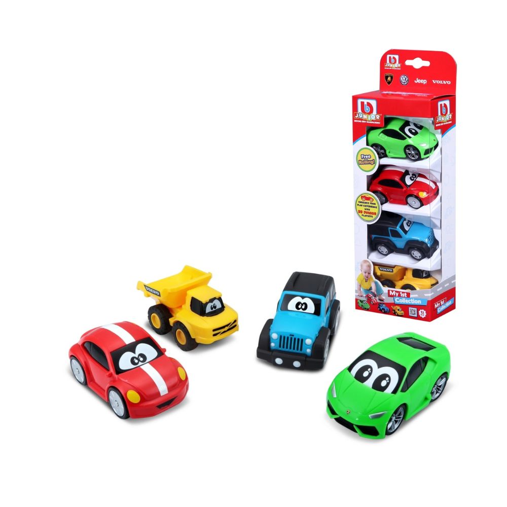 تشكيلة من 4 سيارات وشاحنات لمرحلة ما قبل المدرسة لأصغر عشاق السيارات. قيادة ممتعة ومجانية. حجمها مناسب تمامًا للأيدي الصغيرة.