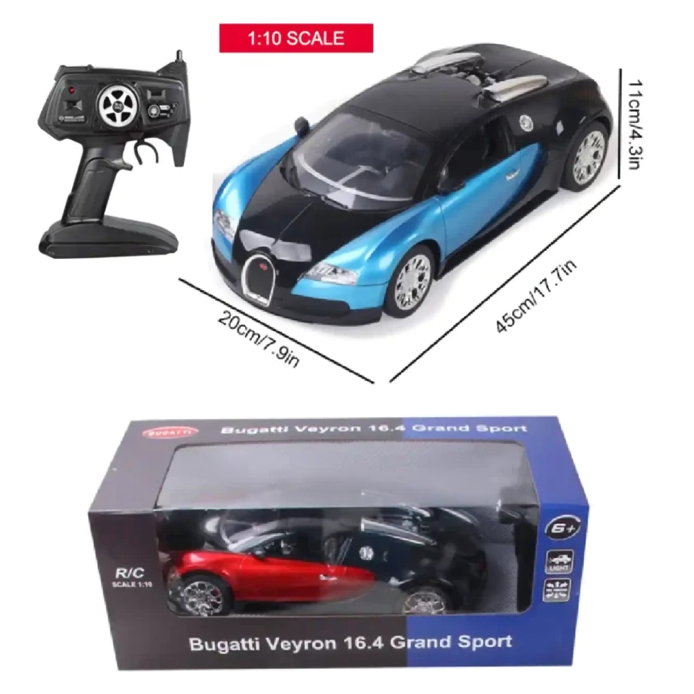 النوع: سيارة تحكم عن بُعد الوظائف: للأمام، للخلف، للانعطاف يسارًا ويمينًا المحتويات: سيارة، جهاز تحكم عن بُعد، كابل شحن المقياس: ١:١٠ الأعمار المناسبة: ٦ سنوات فما فوق الألوان المتوفره: أزرق أو أحمر