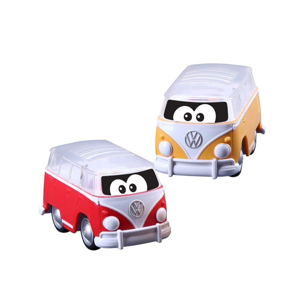 نمط لعب كلاسيكي بتصميم فولكس فاجن المميز؛ ادفع الحافلة الصغيرة على الأرض وشاهد الكرات الملونة داخل السيارة وهي تنفجر وتقفز.