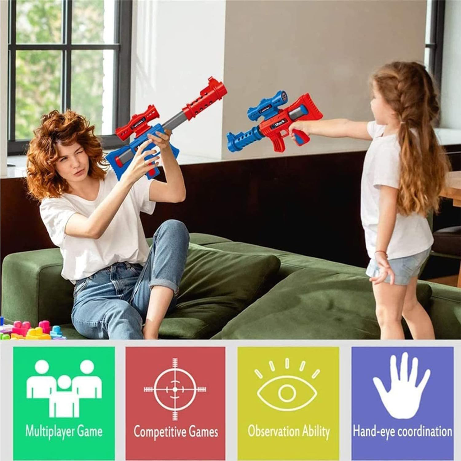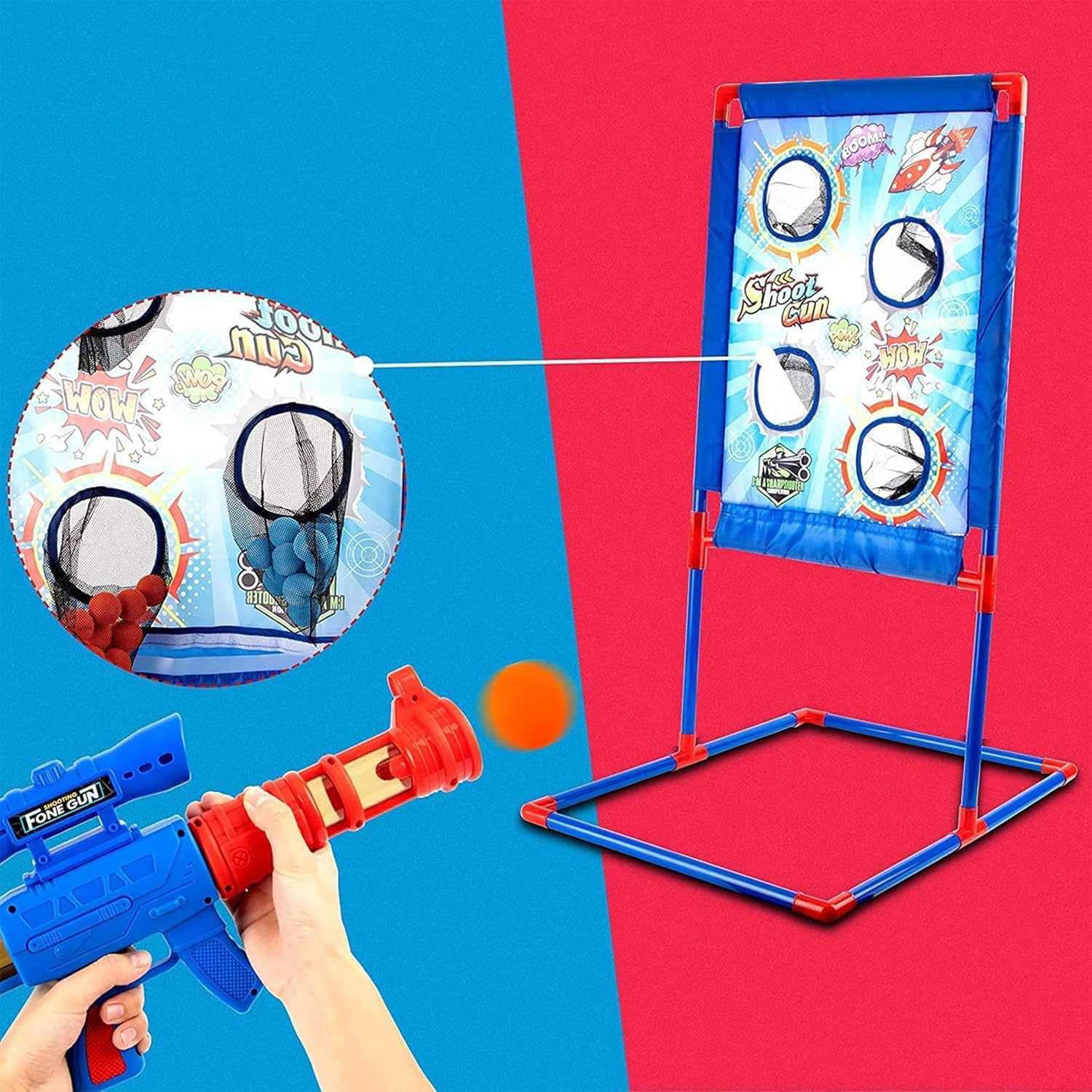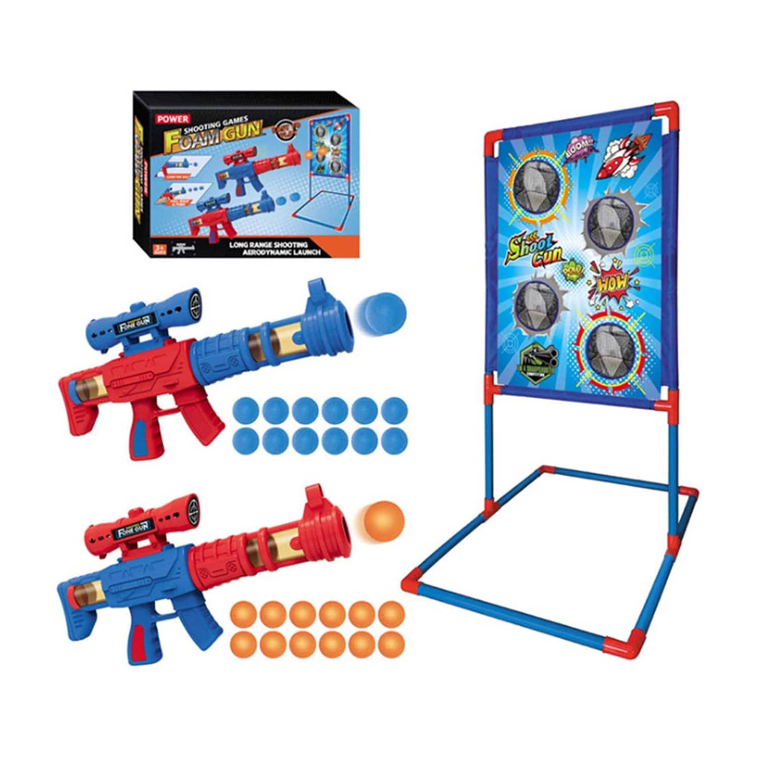 مجموعة ألعاب إطلاق النار – تأتي ألعاب البندقية المستهدفة مع عبوتين من قاذفات الهواء، و24 كرة إسفنجية ناعمة (أحمر وأزرق)، وهدف إطلاق نار قائم بطابع الفضاء. مثالية للعب في الأماكن المغلقة أو الهواء الطلق! يمكنك الحصول على المزيد لبعض أفراد الأسرة الآخرين لقضاء العطلات.