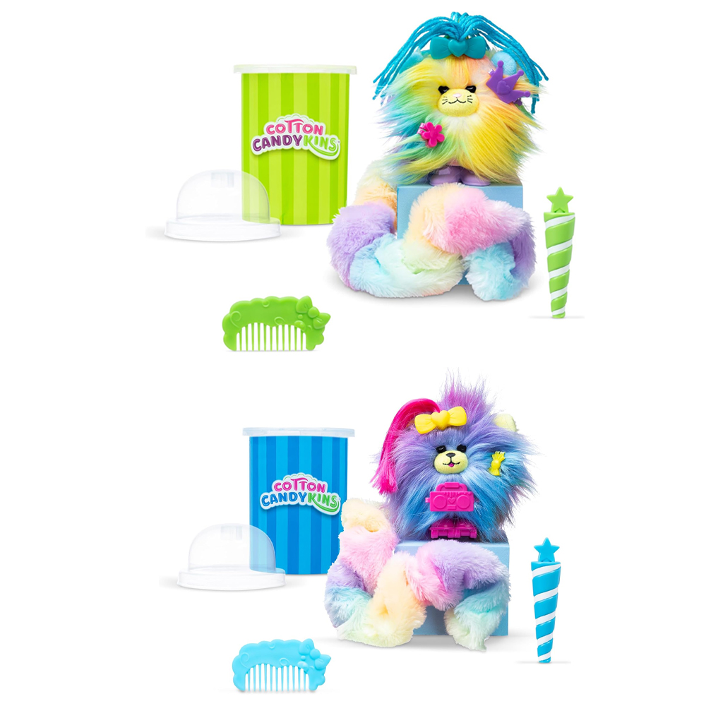 حلوى غزل البنات بلمسة مميزة: ابتكري وصممي صديقًا جديدًا لطيفًا مع مقتنيات دمية غزل البنات القطنية! تتميز هذه الحيوانات الأليفة المحبوبة برائحة غزل البنات اللطيفة وشعر طويل وملون “غزل البنات” ينتظرك لتصفيفه وتخصيصه.