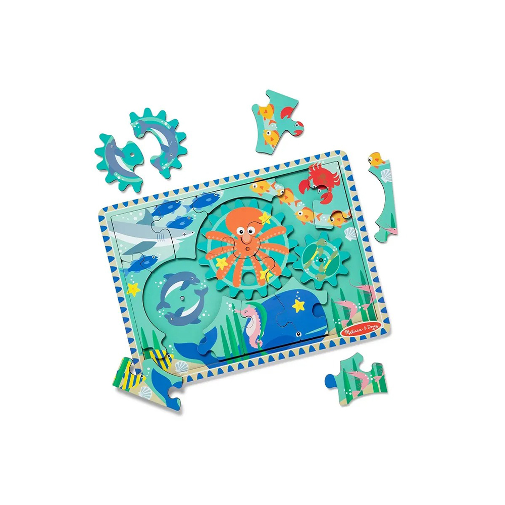 تجميع أحجية الصور المقطوعة الخشبية المكونة من 18 قطعة ذات طابع المحيط مع 3 تروس متشابكة تدور. عمل فني على لوحة أحجية خشبية أسفل القطع لسهولة المطابقة. تصميم مبتكر فريد من نوعه في السوق – قطع التروس تناسب الأوتاد الموجودة على لوحة الأحجية لإنشاء 3 تروس. تتضمن أنشطة العد والبحث والعثور؛ تساعد الحيوانات الودودة والمشهد الجذاب في تعزيز التعرف على الأرقام والألوان والحيوانات، وتطوير المهارات الحركية الدقيقة. توفر لعبة التروس فرصًا لاستكشاف السبب والنتيجة من خلال لحظات مثيرة مدفوعة بالحركة. تمثل هدية رائعة للفتيات والفتيان من سن 3 إلى 5 سنوات، للعب العملي بدون شاشة.