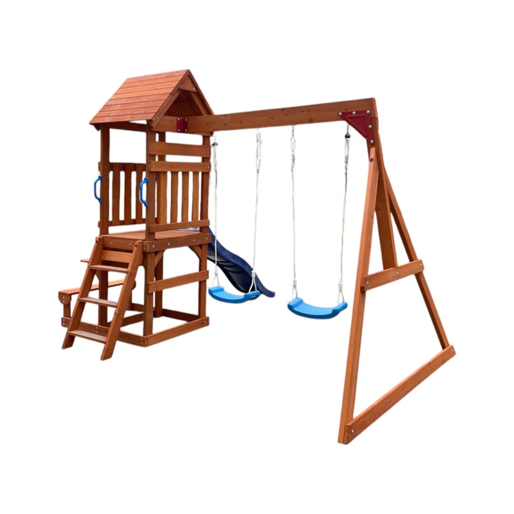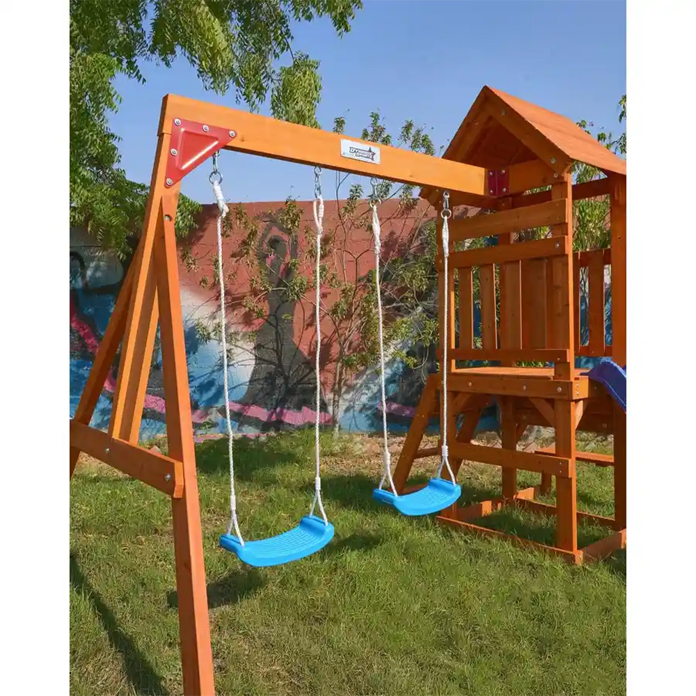 أرجوحة الوبر العربي الخشبية من ديناميك سبورتس تُلبي احتياجات الحدائق الصغيرة، وهو ما لا تستطيع الأرجوحات وحدها تحقيقه، إذ تُتيح الترفيه لما يصل إلى ستة أطفال نشيطين في آنٍ واحد. فهي مُزودة بالعديد من الميزات الممتعة، مثل زلاجة أمواج عالية السكة، وجدار صخري متعدد الألوان للتسلق، ونادي مُظلل في الطابق العلوي مُغطى بقماش السبورة. وفي الأسفل، يُمكن للأطفال الصغار اللعب بكل ما يُرضيهم في صندوق الرمل الفسيح. وبالطبع، تُتيح هذه الأرجوحة المتينة للأطفال فرصة الوصول إلى السماء في أرجوحتي الحزام الأصفر الزاهي. وهي مصنوعة من خشب الأرز عالي الجودة مع صبغة مُسبقة التطبيق، وهي مُصممة خصيصًا للأطفال. كما أنها مُقطعة ومثقوبة مسبقًا لتسهيل التركيب. أما إطار التسلق، فهو الخيار الأمثل لأقصى درجات المتعة في المساحات الصغيرة.