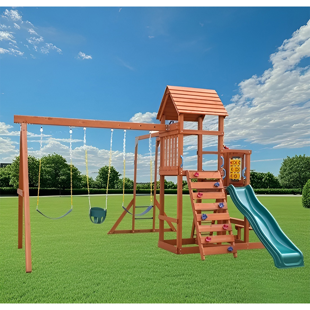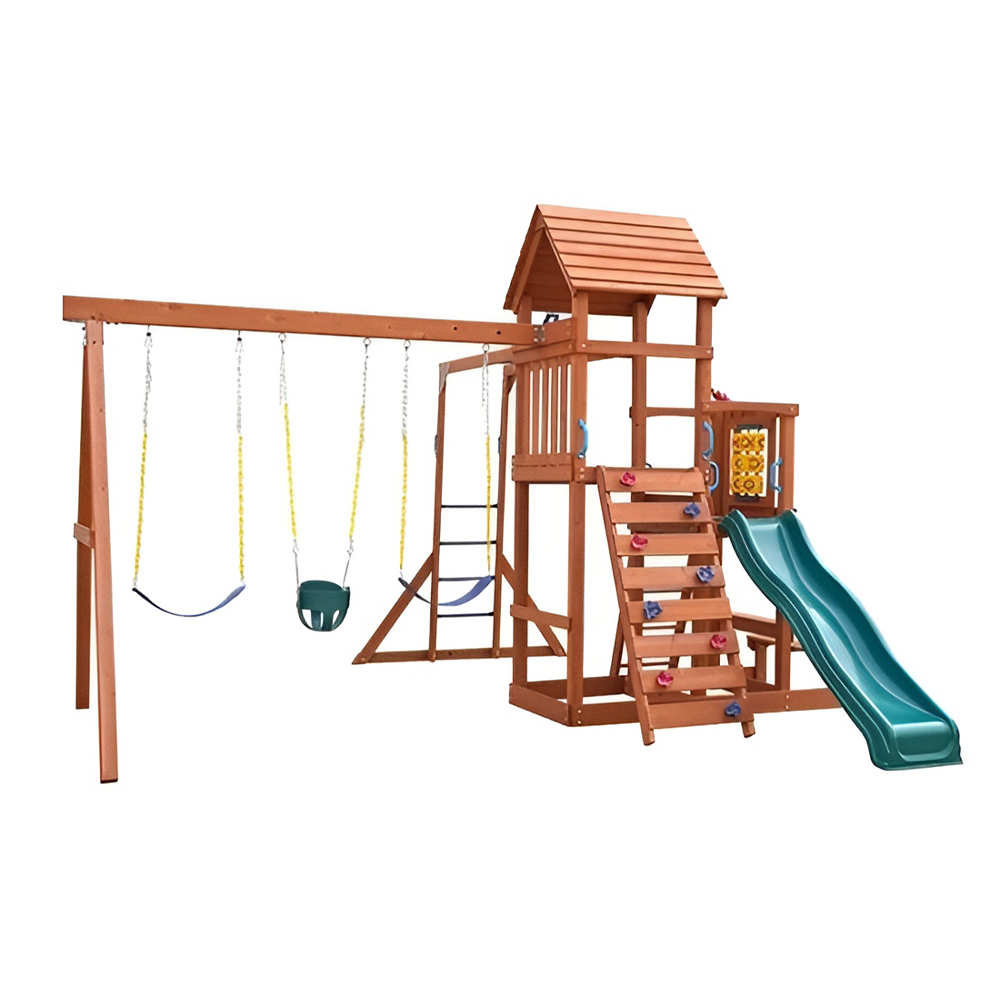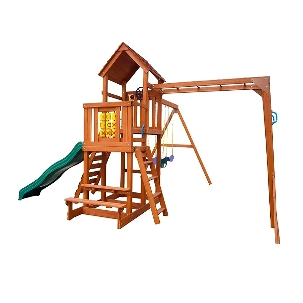 متعة وإثارة لا نهاية لها مع مجموعة ألعاب بروكسفيل أدفينتشر جيمسيت تتميز هذه المجموعة المذهلة بسلم تسلق، مما يوفر ساعات من اللعب النشط. التركيز التعليمي: صقل المهارات الحركية وتعزيز روابط التواصل الاجتماعي لديهم. تشجيع اللعب النشط الصحي. مجموعة متنوعة من الأنشطة: توفر مجموعة الصالة الرياضية هذه مجموعة متنوعة من الأنشطة لإبقاء الأطفال منشغلين ونشطين. مجموعة التأرجح: أرجوحتان قويتان بمقاعد مريحة ومقاومة للطقس توفر متعة تأرجح لا نهاية لها. أرجوحة الطائرة الشراعية: مضاعفة المتعة! يمكن للأطفال أن يواجهوا ظهرًا لظهر وأن يعملوا معًا للانزلاق عبر الهواء. الشريحة: شريحة سلسة ومموجة توفر رحلة مثيرة للأطفال. جدار التسلق: جدار التسلق المليء بالتحديات مع مقابض الأمان يشجع النشاط البدني ويعزز الثقة. قضبان القوية تعمل على تعزيز قوة الجزء العلوي من الجسم وخفة الحركة. أبعاد المنتج: 500 سم × 600 سم × 350 سم (طول × عرض × ارتفاع) 3 سنوات فما فوق.